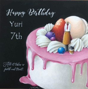 ・ケーキを描くとして、ケーキを右下に寄せて、左上に文字やラインを入れる構成。