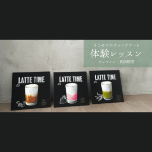 お客様からのオーダーを想定し、テーマに沿ってよりレベルの高いボード作成をいたします。フリーハンドでの文字の書き方やきれいに見せるものの配置の仕方、効果的な見せ方や複雑な色の使い方などを習得。修了とともに受注・制作販売ができるよう、金額設定やお客様とのやりとりを想定した内容となっております。修了時にプロの資格を取得できます。対面かリモートレッスンかお選びください。